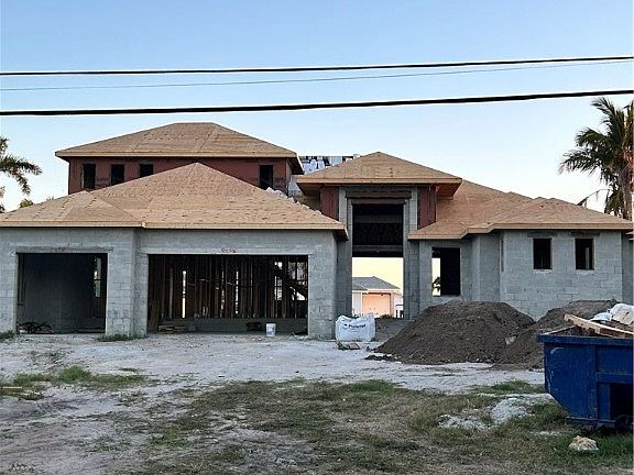 Under construction, a magnificent two story estate home featuring 4 bedrooms, 4 full baths, study, flex space with 2nd floor balcony overlooking a breathe taking gulf access view. Boaters delight with only minutes to the Caloosahatchee River. Outdoor entertaining at it's best with two covered lanai areas, pool, spa, sun shelf, pre-plumbed & pre-wired for future outdoor kitchen and large screened in pool deck. Plenty of room to host your family & friends and enjoy the great room open to the kitchen with gourmet cabinets, large island, built-in appliances, volume tray ceilings, 90 degree 10' tall pocket sliders. Assessments paid. Estimated completion April/May 2024