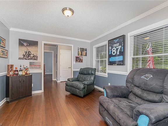 So many outdoor activities and lake amenities offered by Oak Hollow Lake and the surrounding area all within a 6 minute drive including a sailing club, park, golf course, disc golf park, campground & marina! Come see this great split floorplan ranch with 3 bedrooms, 2 and a half baths plus a dining room/office PLUS a bonus/flex space with its own exterior access which could be a great option for a home business. The flex space is currently being used as a fourth bedroom. Gas fireplace, built-in shelves, bamboo flooring & vaulted ceiling in the living room. Bamboo flooring & bay window in primary suite. Walk-in closet, dual sinks, separate shower, jetted tub in primary bathroom. A second bay window in the large kitchen/breakfast area combo. Refrigerator is included. Great sized secondary bedrooms. Fully fenced backyard with a garden area, shed and large deck. Detached 2 car garage with breezeway to the mud room entrance. This house is being sold as-is. Showings begin 3/25/23.