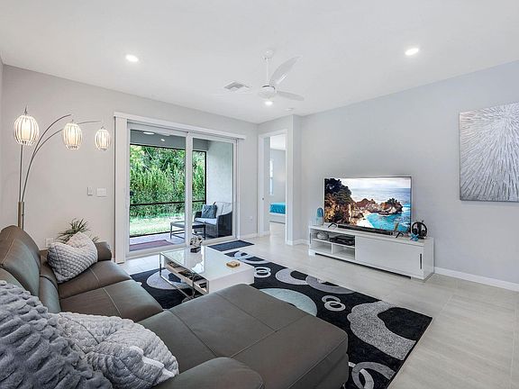 Experience tranquility with peaceful preserve views in this villa located in the gated community of Enbrook, brimming with resort-style amenities. The expansive living area, adorned with modern ceiling fans and lighting, flows seamlessly into a stunning kitchen featuring beautiful quartz countertops, upgraded white and gray cabinetry with convenient pull-out drawers, and sleek stainless steel appliances. Elongated white tile flooring extends throughout the home, while the den offers a custom built-in desk and storage for work or hobbies. Indulge in the spa-like bathrooms, showcasing a glass-enclosed shower in the primary bath and light, neutral tile. Step outside to your private brick-paved lanai, a serene retreat to unwind and enjoy nature's beauty. Within the Enbrook community, you'll discover a resort-style pool, a welcoming community room, a billiards room, and a state-of-the-art fitness center. Stay active with pickleball, tennis, and bocce courts, all included in the low HOA fees. This is more than a home; it's a lifestyle!
