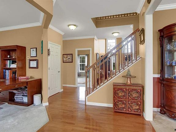 Stunning colonial w/great curb appeal, spacious open layout & plenty of room to entertain! This 4-6 bedroom, 3.5 bath home boasts formal living & dining room, 1st flr office, 2 story family room w/gas fp & open to eat-in kitchen w/stainless steel appliances inc. Enjoy the extended living area in the finished basement that includes family room w/built in shelves, kitchenette, 2 BR's/office & full bath. Trex deck that overlooks large backyard!