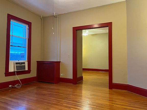 This second story apartment has been freshly painted throughout. It has hardwood floors and ceiling fans in the dining room and living room. The living room, dining room, and master bedroom have electric wall sconces. The ceilings are 12' high in this classic beauty and there are window air conditioners in the dining room and master bedroom that cool the whole space.