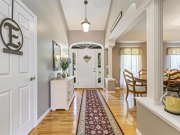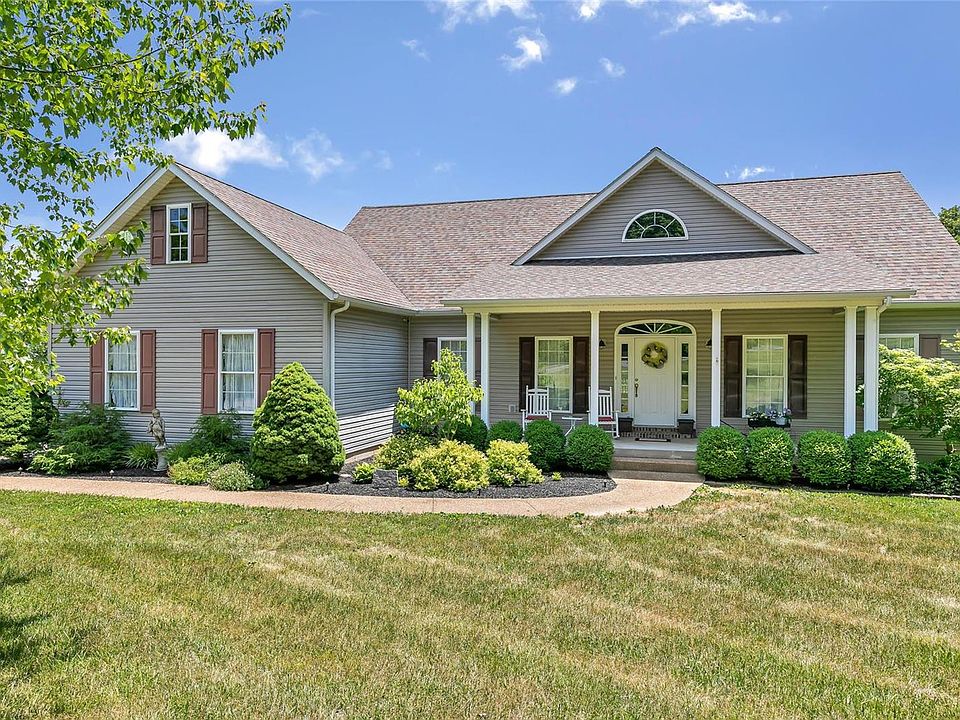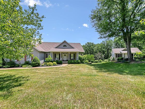 Beautiful atrium ranch home on 3 acres backing to a nearly 3 acre pond! Mature trees, covered porch & cute detached carriage house give this home excellent curb appeal! As you enter this home you are greeted w/ neutral paint scheme, hardwood flooring & beautiful vaulted ceiling. The great room offers a spacious open floor plan w/ access to the covered composite deck. The kitchen features 42" cabinetry w/ crown molding, tile back splash, granite counter, tile floors, breakfast bar & adjoining breakfast room w/ bay window. The main floor master suite has vaulted ceiling, walk in closet & master bath w/ double sink. 2 additional bedrooms as well as a 2nd full bath, powder room, laundry room & formal dining room complete the main floor of this home. Additional living space can be found in the lower level of this home offering family room, 4th bedroom, full bath, kitchen area & vault room! The carriage house provides the 3rd garage space, outdoor sink & additional room above!