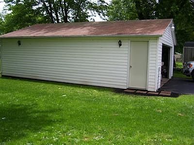 Very comfortable 3 bedroom 1.5 bath ranch on beautiful .47 acre lot w/2 car det garage. 10x20 deck overlooks big trees in backyard. Oversized garage has pull down stairs w/storage above. Updates include new kitchen, carpet, refrigerator, front roof, windows and doors, electric service, remodeled baths, leech field, siding, deck, double driveway resealed in 2010, well pump. Very clean and well maintained. Sit on the large front porch and enjoy the quiet countryside.