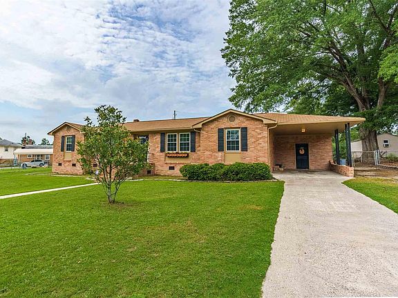 Conveniently located to downtown Columbia and downtown Lexington, this 3 bedroom and 2 bathroom brick home with new exterior paint and charming window boxes is ready to be sold! This home is just minutes from I-26, I-77, and the Columbia Airport. The ranch style home offers a central vacuum system throughout with an open floor plan at the back of the house, which includes an eat in kitchen and den. A large covered deck overlooking the large fenced in backyard with detached garage/workshop (with electricity), provides lots of entertainment space. The yard is perfect for large gatherings and pets. Just under half an acre, this flat lot would easily accommodate any size swimming pool and/or play set. A formal dining and living room are situated in the front portion of the house. The 3rd bedroom can also be used as an office with spacious built in cabinetry and desk. The laundry closet is also located inside the home and there is ample built in storage in the central hallway of the home and a storage room in the carport. The Brookwood neighborhood is a quiet West Columbia neighborhood, perfect for outdoor exercise. This home offers a new HVAC system and water heater. Schedule your showing today!