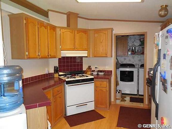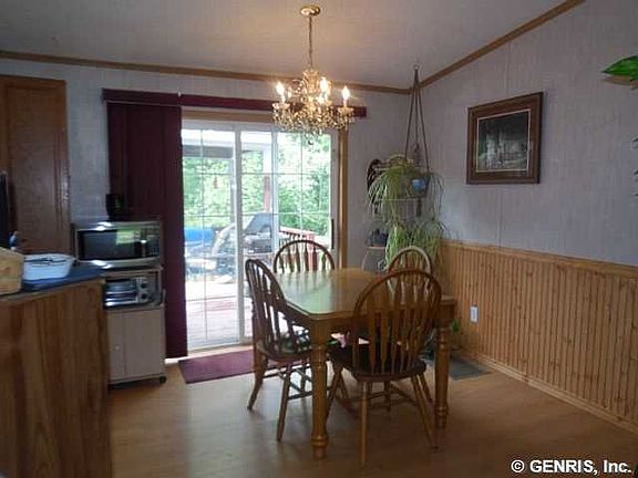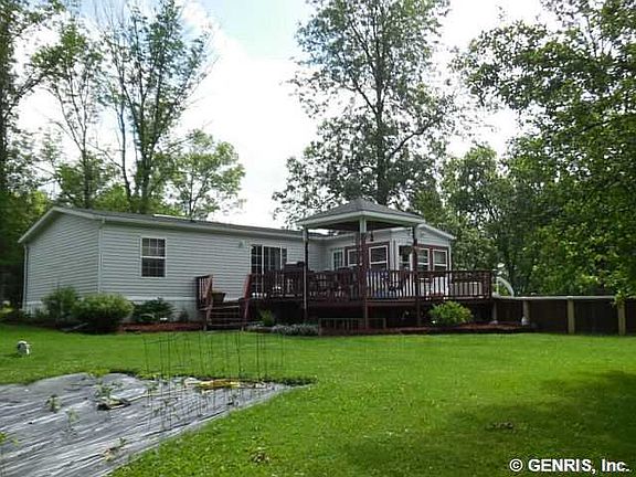 Manufactured 4 bedroom home with 2 full baths in TOWN of Waterloo. Well cared for home sits on 5 acres of privacy with a circular driveway, extra parking off the driveway, back deck & enclosed porch that could be an extension of your home. Large open living room with gas fireplace, kitchen with dinette area leading out to deck. Central Air thruout. Public water now available. Buyers agent to confirm all taxes.