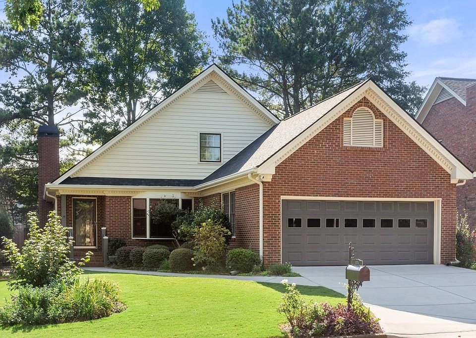 Come see this beautiful home in in sought after Hunters Vineyard, a quiet walkable neighborhood. This well maintained and 4 side brick residence features master on main. Easy 1 step entry from garage into kitchen. Upon entering the Front door, a lovely foyer leading to an oversized living room which opens to large dining room. Living room also opens to stylish light-filled sunroom addition that leads to private courtyard with exquisitely maintained landscaping with gazebo and seating area. Upstairs boasts 2 spacious bedrooms for family and guests plus a large easily accessible attic storage space. The eat-in kitchen included ample cabinet space and hardwood floors. From the kitchen you can exit through French doors leading to lovely back porch or access the laundry and large garage.