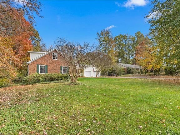 Country living in the city! Set on over 1 acre, this home is centrally located to New Garden and Battleground shopping and offers easy access to Bryan Blvd. Original owners have put a lot of love into this home to make it ready for new owners. Move right in! Fresh paint throughout main and upper levels, new LVP flooring, new carpet in bedrooms and refinished hardwoods in the living and dining rooms. Spacious and bright kitchen with solid surface counters. Huge den with beautiful brick fireplace and hearth. Sunroom (not included in heated sq ft) is right off the den and overlooks the backyard. Main level primary bedroom with ensuite bath and walk-in closet. Built in desks in secondary bedrooms on main level. Upstairs offers space for possible 4th bedroom plus a bonus room/office and walk-in attic access. Basement is unfinished but partially heated and offers huge opportunity to new owners to finish or leave as is. Zoned for the new Claxton Elementary (see GCS website for details).