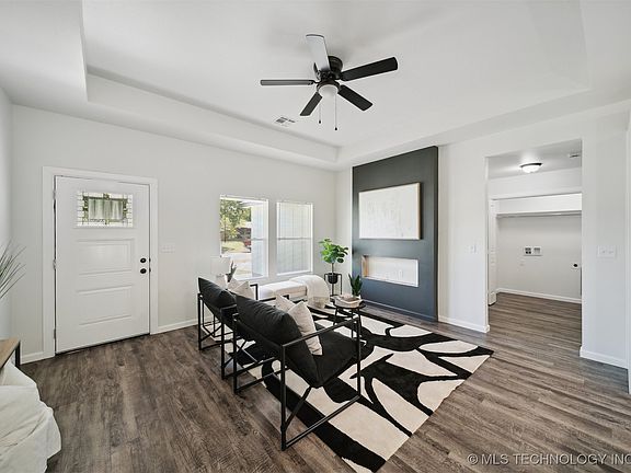 Check out this stunning new construction in the heart of Tulsa! With its open floor plan, vaulted ceilings, and beautiful fireplace, this home offers a perfect blend of style and comfort. The kitchen is a chef's dream, featuring gorgeous granite countertops that make cooking and entertaining a breeze. Whether you're relaxing by the fire or hosting friends and family, this home has everything you need to live your best life. Don't miss out on this beauty—it’s ready to welcome you home! Buyer to confirm school district.