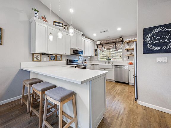 This desirable cottage-style townhouse offers a perfect blend of comfort and modern updates. The primary bedroom is conveniently located on the main level, making it ideal for easy living. Step inside to find a beautifully updated interior that showcases the finest craftmanship. The heart of the home is the exquisite kitchen, adorned with quartz countertops, crisp white cabinetry and upgraded SS appliances. Additional features include a farm sink and hot water on demand. The living room features an updated gas fireplace. The primary bedroom has a walk-in closet and an updated bathroom. The upper level provides 2 additional bedrooms with large closets and another updated bathroom. The exterior provides a large patio and a raised garden bed. Added features are the Community clubhouse and swimming pool.