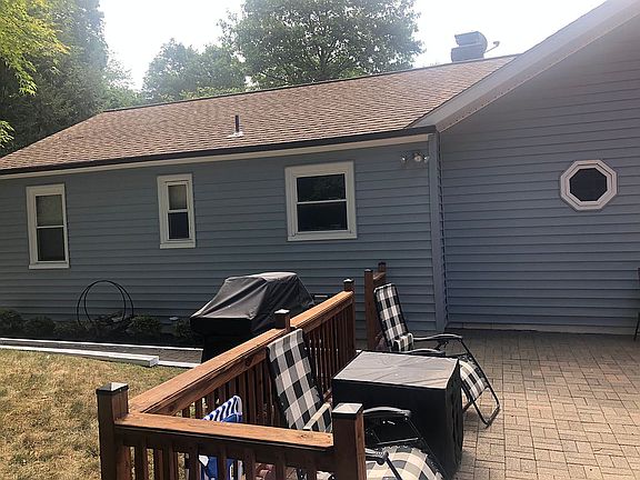 New roof (2014), central AC split system (2014), oil burner (2010), water heater (2008), and 1000-gal polypropylene septic tank (1998) . Finished large family room that can serve as additional bedroom areas. Internet wired (4 stations) and wireless throughout. Cable TV service and Direct-TV ready with roof-mounted dish. Well-maintained property and landscaped beautifully by owner. Two fireplaces (living room and master bedroom). Cathedral ceilings in large, spacious living room with picture window. Parking for several cars. Storage shed (10 x 8) that has an additional storage shelf and is sufficient to store ride-on lawn mower, snow blower, garden tools, etc. Upgrade electrical service to 220 amps and expanded circuit panel (Aug 2919). Installation of 6-stage under sink iSpring water filtration system with easy removal/replace filters (July 2015). Whole house water filter. Ice maker/water supply line to refrigerator already installed. Installation of double pans low UV light sash windows in kitchen and spare bedroom (July 2019). Exterior house painted blue:grey, new main water line into septic with below ground waste access, new white aluminum gutters and downspouts, newly paved asphalt main driveway, and garage door major repair all performed in July, 2022. 550 gal in ground oil tank.