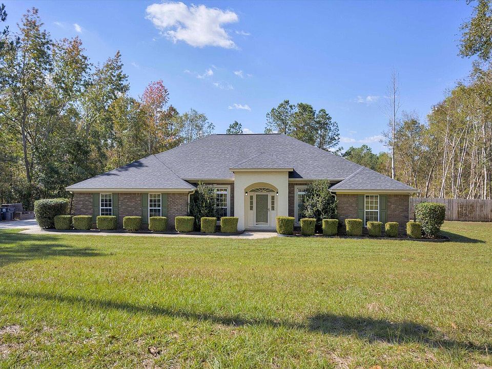 Beautiful and spacious home with an optional above ground pool! This one-level brick home on 2.5 acres in Columbia County has so much to offer! Architectural shingle roof, open floorplan with formal dining area, flex room, great room, and an upgraded kitchen with breakfast area.. You will love the easy-care flooring throughout the main areas, the stainless steel appliances, sun room with barn doors, and the ample storage throughout the house. Four bedrooms and 2.5 bathrooms, with a primary suite that offers a huge ensuite bath with a separate tub and shower. The large fenced backyard has a great above-ground pool which can be removed if the buyer does not want it. No HOA and conveniently located near shopping and restaurants, plus close commute to Fort Eisenhower and other areas of Augusta!
