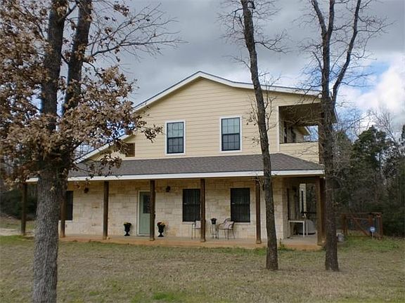 Stunning custom home built by Mike Jack. This unique floor-plan boast stained concrete floors, granite counters, water well, balcony off master, washer dryer & refrigerator convey. Floor to ceiling Austin white stone fireplace. Nice sized secondary rooms. Two nicely treed acres that are fully fenced as well with a separate fenced in back yard. The front porch wraps around the side of the home and welcomes you to sit and enjoy the country life. Add this home to you list today !!!!!!