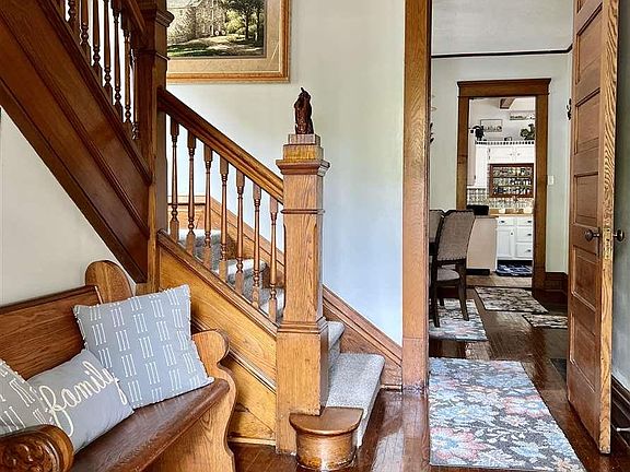 From the original woodwork to the functioning pocket doors, this stunning, historic 3 bedroom (potential 5 bedroom) 2 story home has been restored to its former glory! Some of the features of this home include a new roof in 2020, beautiful hardwood flooring, a welcoming foyer with stately staircase, a grand parlor, formal dining room, spacious living room, updated kitchen with wood beam ceiling, 2 updated full bathrooms (1 downstairs & 1 upstairs), nice sized bedrooms upstairs, lots of storage throughout including a basement with laundry, attic with potential extra living space, a fenced backyard with fire pit and more! Be sure to watch the walkthrough video to get a better feel for the layout of this home. Home warranty provided by the seller for the new homeowners peace of mind.