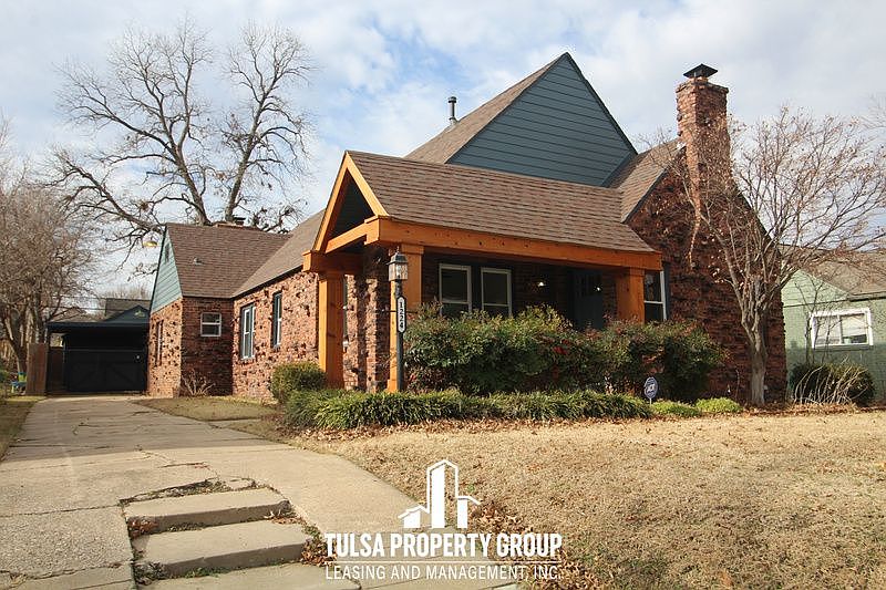 Newly renovated, ultra-modern home located directly across from Gary Park and just minutes from Tulsa University Campus!Gorgeous brick exterior with fresh landscaping and natural cedar porch beams!Living Area features remote operated fireplace and programmable lighting/fan!Galley kitchen features ample cabinet and counterspace, as well as a stove top faucet and granite counter tops!Formal Dining and Dinette are featured at either end of the kitchen. Dinette features built-in coat rack and bench, as well as Washer/Dryer connection closet!Master Ensuite features decorative fireplace and two closets! Walk-In Shower features Dual Waterfall Showerheads!Guest Bath features Lounging Tub and a Rainfall Showerhead!Privacy-fenced backyard is perfect for entertaining on game day!Single car garage features extra, canopied parking behind private gate! More parking available in front drive.Don't miss this gorgeous Tulsa home!
