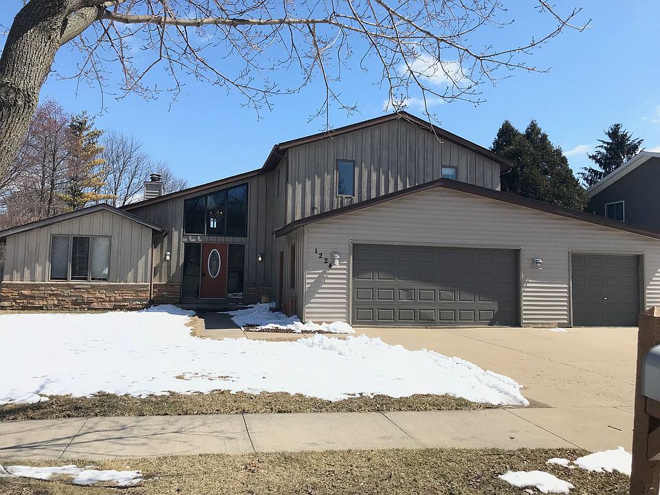 This contemporary 2 story home provides comfortable and spacious living. Step inside to be greeted by a volume foyer with transom windows, stone floors and an open staircase. Just off the foyer is a nicely appointed living room that can accommodate large furnishings and is anchored by the large bay window. Tucked behind the open front staircase you will find a cozy family room complete with a wood burning fireplace perfect for those brisk nights. Patio doors from the family room lead to the fully fenced backyard. The sizeable formal dining room can be a great multi-purpose space as it's located between the kitchen and the family room. A fully appliance kitchen is conveniently positioned at the back of the home just off the garage and is stocked with cabinetry. An updated half-bath completes the main floor living space. The upper level of this expansive home is comprised of a master suite with a private full bath and a walk-in closet, as well as two additional bedrooms and a common second full bath. Additional features include: 4 Car attached garage with 3rd double deep bay, updated carpet on the upper level, upper level loft space, full unspoiled basement and much more. Buy in confidence this home comes pre-inspected and offers a 1 year HMS Home warranty.
