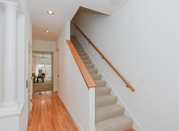 Full brick townhome only 2 blocks from historic Main Street in St. Charles. 10' ceiling on the main floor, 9' ceiling on 2nd floor & lower level & and ELEVATOR . 2 story entry foyer leads to arched opening to the den flanked with pillars. Natural wood floor in the foyer, hall & kitchen. 42" cabinets, 5 burner gas cooktop, GE Monogran Stainless range hood, solid surface counters & breakfast bar. Kitchen opens to the Dining Room/Family Room loaded with windows, recessed lighting & gas fireplace. French door leads to deck. Perfect entertainment area! Upper level boasts a large master suite with computer nook & seating area. Master bath with corner tub, seperate shower, raised vanity & seated storage. 2nd bedroom with private full bathroom. Upper level laundry room St. Louis Closet Company organizers in every closet & laundry room. Finished LL has rec, workout room, 3rd bedroom & 3rd full bath. Side entry garage with wall organizer system. Central vac. Overlooks the Katy Trail!