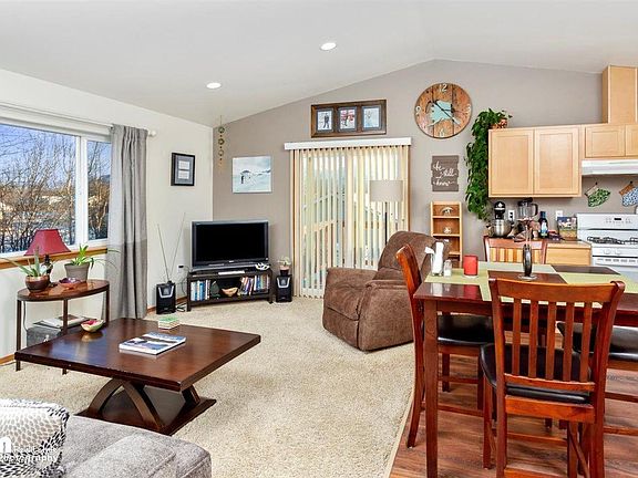Stunning mountain views from the comfort of your home! Located just 5 min from downtown and quick access to the Glenn Hwy makes this home a commuting dream! Open concept with vaulted ceilings tons of bright light, HUGE fenced yard, separate laundry room, heated garage and more!