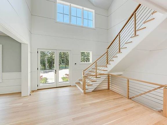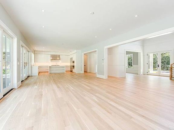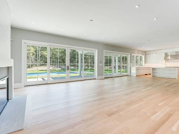 In a private setting, positioned far back off of Sagg Road, discover this new construction modern farmhouse built by Farrell. Set on 1.67+/- acres, the home features modern finishes throughout and offers 6,056+/- sq. ft. of living space with seven bedrooms, six full and two half baths. Enter the foyer to light-filled open concept living areas flowing among the spacious great room with fireplace, and eat-in kitchen with custom-built cabinetry and appliances by Wolf and Sub-Zero. There is also a formal dining room. The first floor master suite includes two walk-in closets and bath with radiant heated flooring and double vanity. A laundry, mudroom and cabana bath are also on the first level, along with an attached two-car garage with radiant heated flooring. Upstairs are four en-suite bedrooms, two of which share a large terrace, and a second laundry room and a linen closet. The finished lower level includes a media room, gym, recreation area, two bedrooms sharing a bath, and storage space. Outdoors relax or entertain on the stone patio or expansive covered porch overlooking the heated gunite pool and spa.