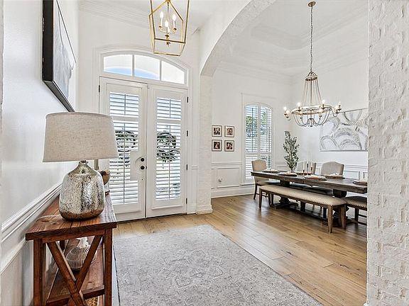 Beautiful French country style home is now for sale! Backing up to greenspace in Spring Haven subdivision on a large fenced in property, this home offers many stylish amenities. This home has undeniable curb appeal with its beautifully painted white brick arches, elegant French doors, dual gas lanterns and pristine landscaping. Entering the home you instantly feel welcomed by the soaring ceilings with crown molding throughout, painted brick archways, multiple double tray ceilings, gorgeous white wood beams, surround sound speakers wired in the ceiling, engineered Oak wood flooring, ample windows allowing natural light to shine through, a chef's kitchen with quartz countertops, gas stainless appliances, intricate backsplash, a pot filler, ice machine, and tons of cabinet space! The triple split floor plan offers 4 beds with 3 full baths in separate wings of the home, a beautiful primary bath with deep standalone tube that's separate from the large walk - in shower, a formal dining and breakfast nook, a mud room with ample storage, large pantry and office nook with a desk and cabinetry. A screened in back porch leads to a large and fully fenced backyard with views of the greenspace and woods behind it. The 2-car garage has overhead storage racks mounted to the ceiling for ample space! See many more features of this pristine home today!