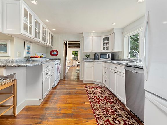Elegant cape with 10 acres of gorgeous land located on coveted Tucker Hill Road in Thetford, VT. Charming house has cherry floors throughout, newer kitchen and baths, and loads of sunlight. Living room with wood beams features a large picture window facing west where you can enjoy beautiful sunsets over surrounding hills. House also features three bedrooms, including a first-floor option; a relaxing, four-season porch; and an amazing lower level office/studio with large built-in desk, built-in bookcases, attached bath, and ample light. Lower level also includes an oversized garage perfect for camper or boat storage. Attached two-car garage and lovely outbuilding. Open meadows, expansive grounds, beautiful gardens with established beds, and a flower garden with Celtic cross design surrounded by boxwood. Seven minutes to Thetford Academy and Thetford Elementary School; 15 minutes to Dartmouth College and Hanover, NH; 25 minutes to Dartmouth Hitchcock Medical Center; and close to Dartmouth Skiway and Lake Fairlee. Easy access to vast networks of hiking and biking trails. You can also enjoy cross country skiing right out your front door. A beauty!