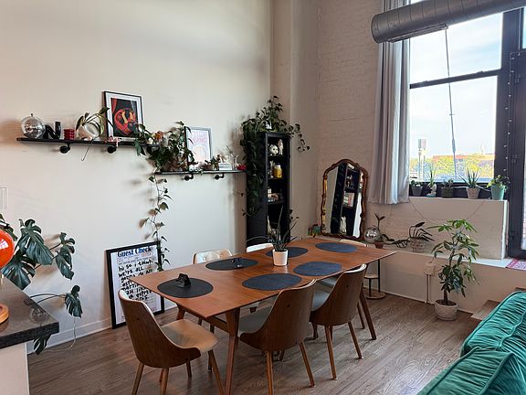 Van Buren Lofts. This loft conversion building offers a beautiful lobby, elevator and door person. Live in an amazing 2-bedroom and 1-bathroom contemporary LOFT space w/14 ft ceilings, loft area in 2nd bedroom, hardwood floors, in-unit washer/dryer, and private balcony. Granite kitchen countertops, 42" cabinets, SS appliances, and SO much natural light! Large bathroom features double bowl sinks and tub/shower. Building amenities include workout room, media room, common roof deck with breathtaking views! Indoor parking INCLUDED in the rent. Conveniently located across the street from the Blue Line Stop, CTA bus stops, and highways. Close to restaurants, parks, shopping, hospitals, top ranked Skinner Elementary school and The University of Illinois at Chicago. Move-in Fee, Move Out Fee, Refundable Damage Deposit. Tenants pay Gas and Electricity