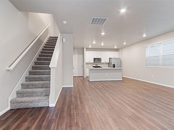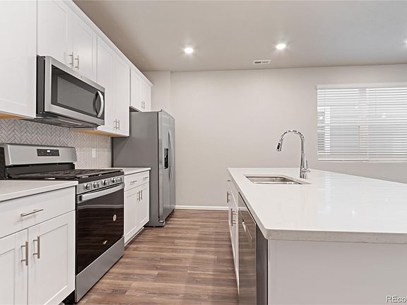 Brand new, energy-efficient home available NOW! Washer, dryer, fridge, and blinds included. Just imagine sitting on your covered front porch drinking a nice refreshing cup of lemonade! Outfitted with gorgeous white cabinetry, herringbone backsplash in the kitchen, quartz countertops, and luxurious vinyl plank flooring throughout the main Now selling from our model homes. Located in Northglenn just a short distance from parks, shopping, dining, and entertainment. Meet friends for dinner downtown or simplify your commute to work with easy access to I-25 and the nearby lightrail station. Groundbreaking energy efficiency is also built seamlessly into every home in this community so you can spend less on utility bills and more on the things that matter most.* Each of our homes is built with innovative, energy-efficient features designed to help you enjoy more savings, better health, real comfort and peace of mind. Photos are a Builder home of same floorplan.