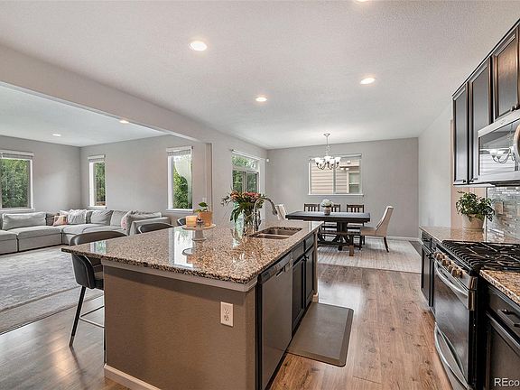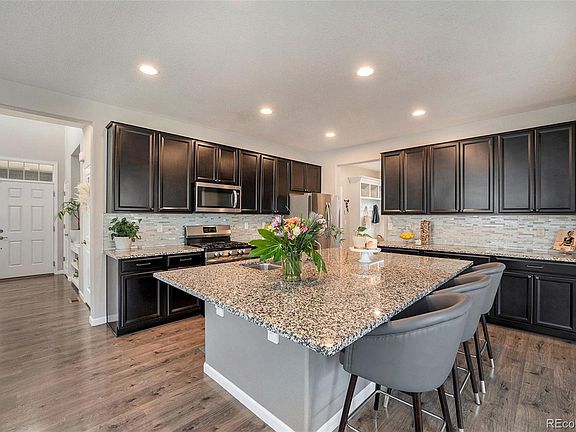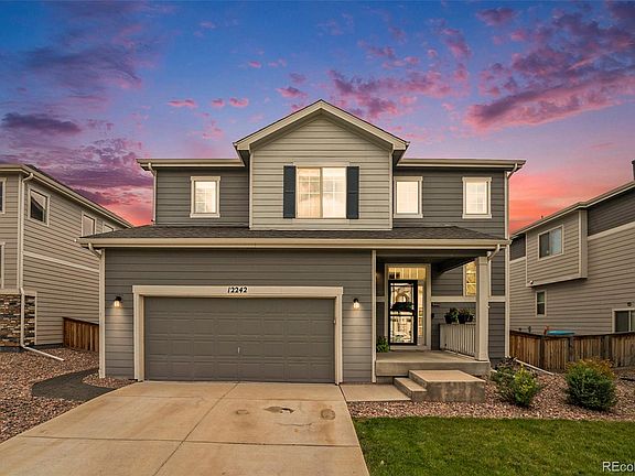 Light and bright, this spacious home is ready for you to set your new roots. Boasting 5 beds, 4 baths, an office space, and a finished basement with its own flex space - perfect for guests or a private hideaway! Allow the home's vaulted ceilings and oversized windows to brighten up your entire space with endless natural light. Enjoy 300+ days of Colorado sun in your beautifully landscaped and professionally irrigated backyard perfect for entertainment or activities! Conveniently located just a few steps from the community park, with easy access to major highways, Buffalo Run Golf Course, shopping, and so much more!