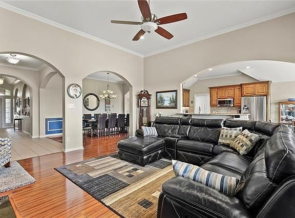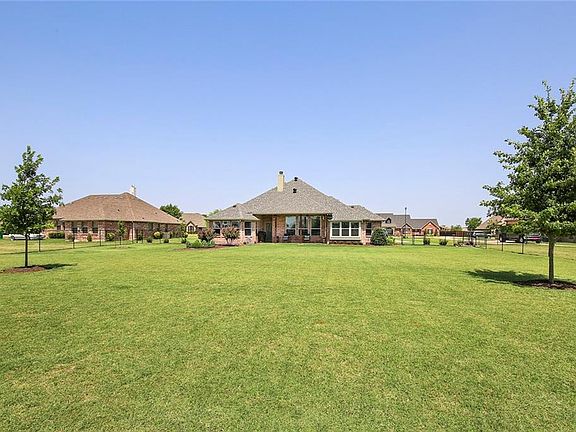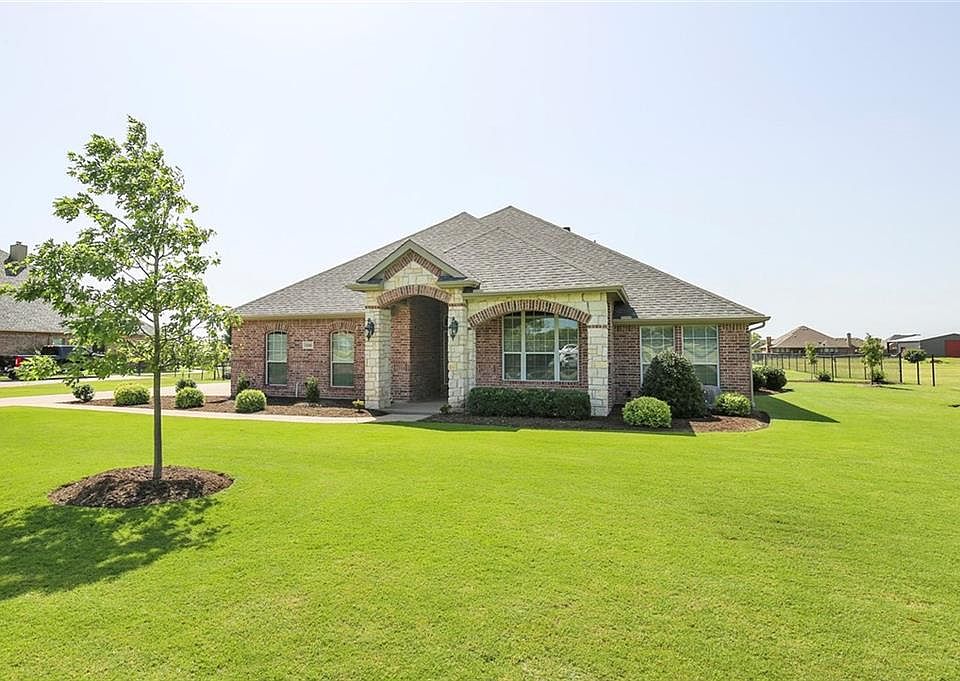 Gorgeous home with brick and stone exterior situated on an acre. Open, split bedroom arrangement. Designer touches throughout including wonderful entry with barrel ceiling, all bathrooms customized, decorative lighting, arched entrances, and more! Study could be used as a 4th bedroom. Kitchen offers granite countertops, island, stainless steel appliances, plenty of cabinet and counter space, and overlooks spacious family room with fireplace. Master suite features sitting area, dual sinks, free-standing soaking tub, frameless glass shower, and walk-in closets. Large laundry room. Enjoy a cup of coffee beneath the covered patio overlooking the large backyard. Come make this house your home!