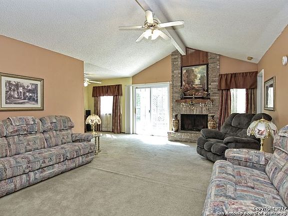Very well maintained home in desirable area. Master bedroom split from other 2 bedrooms. Open living with high ceilings, brick fireplace and sliding glass doors that can pass for French doors. Cute kitchen with new dishwasher, window over the sink, laundry area off kitchen. Recently replaced a/c. Gazebo and shed in backyard. Mature trees and lots of room to play / lounge / grill. Carpets recently cleaned!