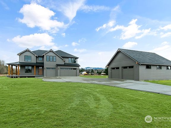 This brand new Zetterberg Custom Home offers the perfect blend of luxury and comfort, nestled on 2.5 acres of land w/breathtaking views of the foothills of Mt Rainier.As you enter the home you'll immediately notice the attention to detail & craftsmanship that has gone into every inch of the property.Huge kitchen,walk in pantry,5 ft refrigerator & soaring 2 story ceilings in the great room.A separate junior suite and office on the main floor offer ultimate convenience and privacy for guests or working from home.Four additional bedrooms & a bonus room on the second floor.The attached 3-car garage provides space for all your vehicles, while the detached 2-car garage and shop offer additional storage and work space for your hobbies & projects.