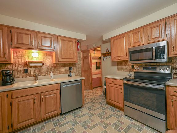 Nestled in the Town of Mountain near Anderson Lake, this charming chalet-style home sits on 1.36 wooded acres with frontage on both Leo’s Road and Highway 32. Inside, the great room welcomes you with soaring cathedral ceilings, beautiful tongue-and-groove detail, and a cozy freestanding wood-burning fireplace. The home offers 3 bedrooms and 2 full baths, with a main-level bedroom and bath, plus two additional bedrooms and a second bath upstairs. The basement features a spacious rec room perfect for extra living, a laundry room, 2 bonus rooms with freshly painted concrete floors and ample closet space. Outside, enjoy a 2-car detached garage, nicely maintained yard with a fire pit & wooded privacy. Short walk to boat landing on Anderson Lake, making this property ideal for lake life!