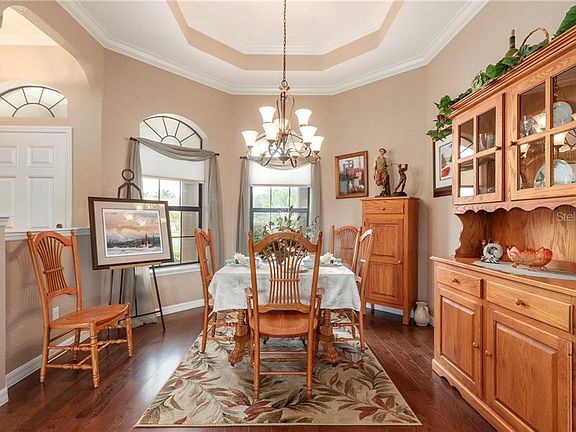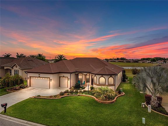 Located on the 7th Tee box with views of 6 and 5 in the Exclusive 55+ Gated, Golf Community of STONECREST adjacent to THE VILLAGES, FL! If you're searching for a Solar Heated, Salt Water POOL home on the golf course with exceptional views, loaded with upgrades, your search is over! Prepare to be wowed! Gorgeous ENGINEERED HARDWOOD Floors, TILE in all wet areas, Upgraded carpet in Family room, 2nd and 3rd bedroom! CHERRY cabinets, GRANITE, Backsplash, soft close drawers, Stainless Steel appliances with Island & Breakfast bar, SEAMLESS bay window overlooking pool! Access to Pool from Family room and Master! 10' Ceilings, CROWN MOLDING, Tray ceilings, custom columns! Master with Soaking Tub, WHEELCHAIR accessible ROMAN Shower, oversized walk-in closet with 6 panel door, Pocket door from Master! Professionally landscaped! Two car plus Golf Cart Garage! Pool motor replaced July 2019, Lanai plumbed for summer kitchen! Many other extras/upgrades not mentioned. We'll leave those for you to discover as you tour your forever home! Everything you need to start enjoying retirement is here! NO CDD NO BOND and a very Low monthly amenity fee!