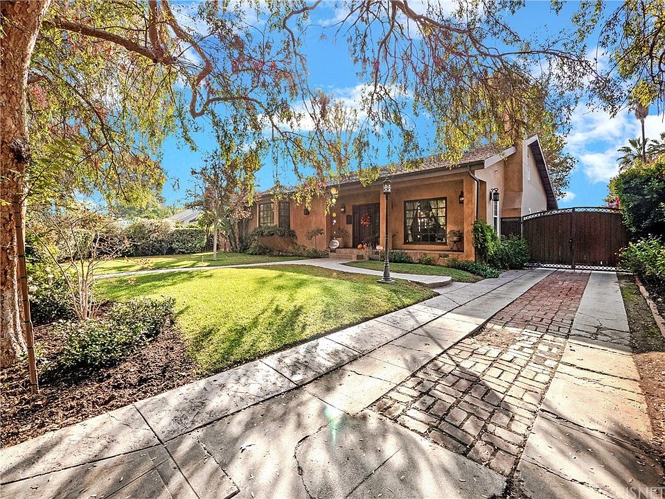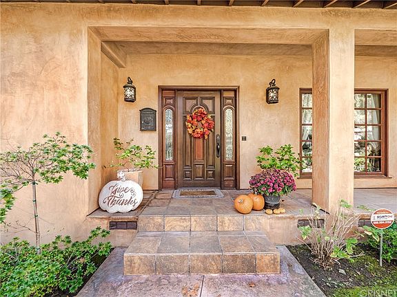 Welcome to Villa on Tiara - a Tuscan Inspired Private Luxury Compound Located on a Tree Lined Street in Idyllic Valley Village. A 2008 Rebuild/Remodel with Exquisite Choices for Finishes, Design, Entertaining and Luxury Amenities. Custom Gourmet Kitchen with Center Island, Granite Counters, Stone Backsplashes, Custom Cabinets, Chiseled Stone Flooring and Kitchen-Aid Professional Stainless Appliances including Built-in Refrigerator. Large Family Room Opens to Kitchen with Vaulted Ceilings and Fireplace. Media Room off Family Room with Surround Sound. Formal Living Room with Cozy Fireplace and Built-in Bookcase and Picture Window to the Front Yard. Master Bedroom with Walk-in closet with Custom Closet Organizers. Sumptuous Master Bath with Soaking Tub, Dual Sink Custom Cabinet Vanity with Stone Countertops, and Frameless Glass Stone Shower. Two Additional Bedrooms Inside the Home each with their own Baths. Beautiful Distressed Walnut Hardwood Flooring in many Living Areas and Bedrooms. Outdoor Living and Entertaining including Large Patio with Professional Viking Built-in BBQ System, Italian Woodburning Pizza Oven and Wet Bar with Steps to Italian Style Garden Pool, Outdoor Pool Shower and Three Room Guesthouse with Bath. Home has Dual Zoned HVAC for Main House, Tankless Water Heaters, and Water Softener.