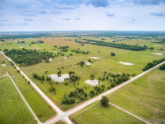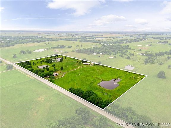METICULOUSLY MAINTAINED HOME WITH HILLTOP VIEWS ON 20 +/- ACRES IN OKTAHA WITH PRIVATE DRIVE, 3 FULLY STOCKED PONDS, SHOP WITH LEAN-TO, 45x30 BARN WITH HORSE STALLS AND WORKING PENS, ROPING ARENA, STORAGE SHED, RV HOOKUPS, AND STORM CELLAR. Situated in the beautiful countryside between Oktaha and Wainwright, this home on 20 +/- acres is an excellent place for anyone wanting to establish roots and raise kids in the country with space to grow and/or build a family compound. The home has been fully remodeled, including a new roof, windows, HVAC, electrical, plumbing, shutters, fixtures, and expanded front porch. The inside has been converted to an open-concept design, showcasing numerous updates throughout—Granite countertops, stainless steel appliances, LVP flooring, fixtures, hardware, and more. Both bathrooms have been updated with tile floors and showers, vanities, mirrors, and the master comes with his- and her-sinks. With 3 fully stocked ponds and a brand-new floating dock on the property, you can spend your mornings sipping coffee overlooking the glistening waters or spend your evenings showing your children the pleasure of fishing at dusk while enjoying the beauty of Oklahoma sunsets. Spend your summers experiencing all the fun and adventure of Lake Eufaula, as it’s only 10 miles from the property. Conveniently located 4.5 miles from HWY 69, 6 miles from HWY 62, 10 miles from I-40, and 13 miles to Muskogee Turnpike, there are multiple major highways and transportation routes easily accessible, making for hassle free commutes to enjoy the amenities and conveniences of numerous nearby towns like Checotah, Muskogee, and Okmulgee. Enjoy the peace and seclusion of country living while still being within a short drive of Walmart, Chick-fil-A, Starbucks, and much more. Don’t miss the chance to acquire such a remarkable piece of property with a beautiful home, excellent views, multiple ponds, and numerous bonus buildings! Call today to schedule a showing.
