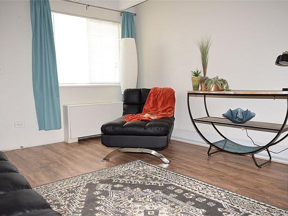 Penthouse Unit with large balcony. Spacious open floor plan with living room, separate dining room, and a remodeled kitchen featuring subway tile backsplash, white cabinets, and newer appliances. Updated with laminate wood flooring throughout. Great location near UC Health, Anschutz Campus, Children's Hospital & the VA. 1-reserved parking space and a nice-sized storage closet off of the patio.