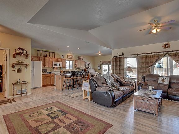 Great open floor plan in this beautiful ranch home with vaulted ceilings on the main level. Open concept flows very well in this home. Great room with cozy fireplace, walks out to 22x17 covered patio. Enjoy your kitchen with granite slab tops, kitchen island, lots of cabinet space, room for eat in table or use the dining area for large gatherings. Many windows on the main level bringing in natural sun light. Master bedroom with 5 pc master bath. Two secondary bedrooms on the main, laundry and full bath. Finished basement with 2 more bedrooms, kitchen area with sink, microwave, refrigerator and many cabinets. Huge family/rec room great for entertaining. Well use of the basement space. Mechanical room has a little workshop. 2nd laundry in basement. Great for mother n law. This is a large home but very comfortable. Backyard has a large covered patio, gazebo, sod and privacy fence. Tandem garage 3rd bay is used as a workshop but can be removed for use of 3rd car if wanted.