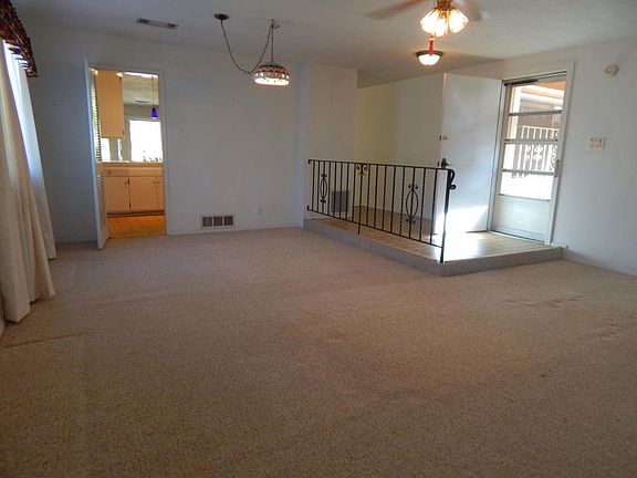 Courtyard entry welcomes you to well loved four bedroom home in Royal Heights. Two living areas plus formal dining room. Kitchen has long tiled island that opens to huge family room. Wood burning fireplace and small wet bar. Separated master suite has door to peaceful tiered backyard with Sandia Mountain views. Covered patio. Value pricing reflects need for some updating.