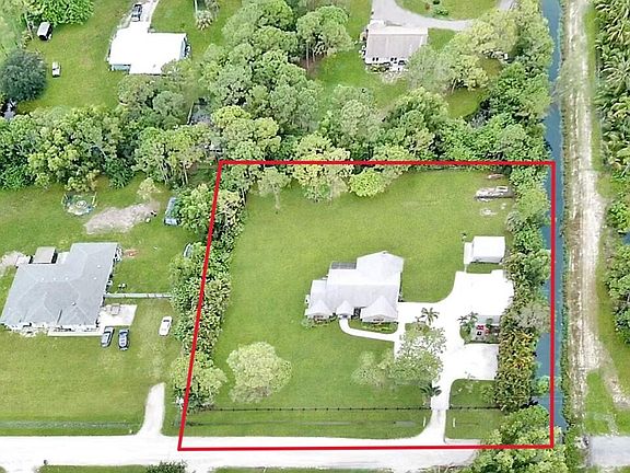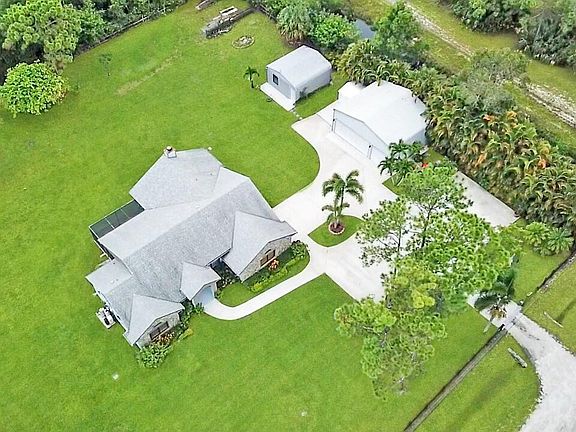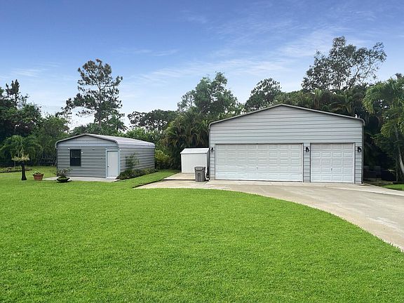 Nestled in the sought-after most eastern community of the Acreage, this meticulously landscaped 3-bedroom, 2-bathroom home with 3 car detached garage and detached game room/man cave spans a generous 1.31-acre lot. NEW in 2021: roof and blown-in insulation, hurricane impact windows throughout and water softener system. New laminate floor throughout. Updated bathrooms. His and her main custom closets. House generator hook up. Wood burning fireplace. Irrigation, fully fenced with electric gate. Huge fully paved driveway, perfect for hobbyists or small business owners. An attached two-car garage offers additional parking and storage solutions. Inside, enjoy a spacious formal living room flowing into an open-concept kitchen, breakfast nook. Outside, a screened-in covered patio. ***Spacious home Includes a 19x19 game room (332 sqft)