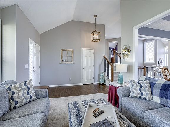 Welcome to your next home! Featuring many recent updates and situated at the back of a quiet cul-de-sac. Walkable to Ravenwood Elementary. Recently renovated kitchen with white painted cabinets, upgraded appliances, backsplash, brushed granite countertops, and upgraded sink and faucet. Newly refinished hardwood flooring in the entryway to the home and the kitchen/eat-in dining area. There is also a formal dining room perfect for hosting dinner with loved ones. Other recent updates include: Carpet, light fixtures, bathroom vanities, interior and exterior paint, and the HVAC, roof & water heater are less than 4 years old. Many rooms in this home are vaulted, making the already generous sized rooms feel even more spacious. Newly expanded patio/deck in the fully fenced backyard. The primary boasts a sizable layout, with plenty of natural light and a walk-in closet. The en-suite bathroom is equipped with a double vanity, a soaking tub, and a separate shower, providing the perfect place to unwind after a long day. Laundry is conveniently located on bedroom level. The finished area in the basement offers an additional living space, as well as the 4th bedroom (or home office) a full daylight window and large walk-in closet. There is also a 198 sq.ft unfinished area for storage. Sprinkler system installed has been to make garden and lawn maintenance a breeze. With its spacious layout, beautiful finishes, and outdoor entertaining area, this home is perfect for anyone looking to enjoy the best of what Olathe has to offer!