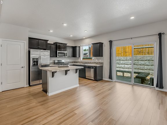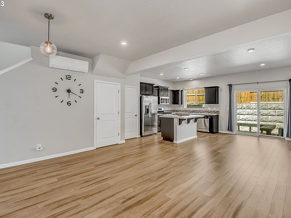 Don't miss out on one of the best locations in River's Edge! This luxury END UNIT is located at the end of the street with an extra play area & a larger front grass area! Enjoy the private location... to the West are one level homes & behind is a retaining wall with a tall fence for privacy! The home features desirable solid bamboo flooring on the main level, an island kitchen with eating bar, pantry, stainless steel appliances & tile counters. Upstairs is a nice loft space, perfect for reading, gaming, playing or a media area. The primary suite is spacious & well appointed with a walk-in closet with a window for natural lighting. The backyard features a built-in bench, composite patio area, flagstone walkways & low maintenance gravel. Enjoy heating & cooling with mini-split heat pump units. Convenient 240V Electric Vehicle charging outlet in garage. There is also a high efficiency gas tankless water heater. Come make this special location yours!