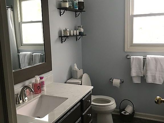 Beautiful home with great view from front porch. New high efficiency Bosch heat pump to heat and cool home. New granite kitchen countertops, asphalt driveway and concrete patio, 30 x 40 pole barn with electric and concrete floor, master bedroom with master bath with new quartz countertop and two walk in closets, large living room with wood burning fireplace. Almost 5 acres of electric dog fence. Beautiful gardens everywhere.