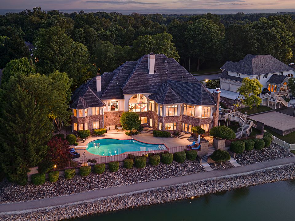 Outstanding Waterfront Windpointe Property! Home has arguably one of the BEST lots on the lake! Beautiful views of Lake Waterstone! Home offers a large private pool and outdoor kitchen. From the moment you enter the home you are wowed by the waterfront views. Primary bedroom is on the main level and home offers an elevator to access the basement and upper level. Kitchen has been recently updated with quartzite counters and new appliances. Walkout lower level has a huge wet bar Indoor spa area and entertaining area with gas fireplace. There is plenty of room for storage and each bedroom has access to a bathroom. Neighborhood amenities include 2 mile walking trail around lake, 3 pools, tennis, playground, clubhouse and pickle ball!