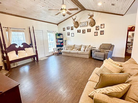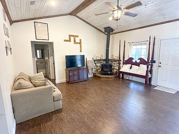 Introducing this beautiful 3 bed 2 bath home privately situated on partially cleared 5.05 acres just 10 minutes from the city limits. This home offers 9 foot cathedral ceilings in the living area along with a real wood burning fire place perfect for the cold weather. The master bedroom, closet, and bathroom offers ideal space for any family! Relax on the beautiful spacious front porch while you listen to the calmness of the outdoors. There is a 12x16 shed with double lean to on each side perfect for outdoor storage. Schedule a showing today!
