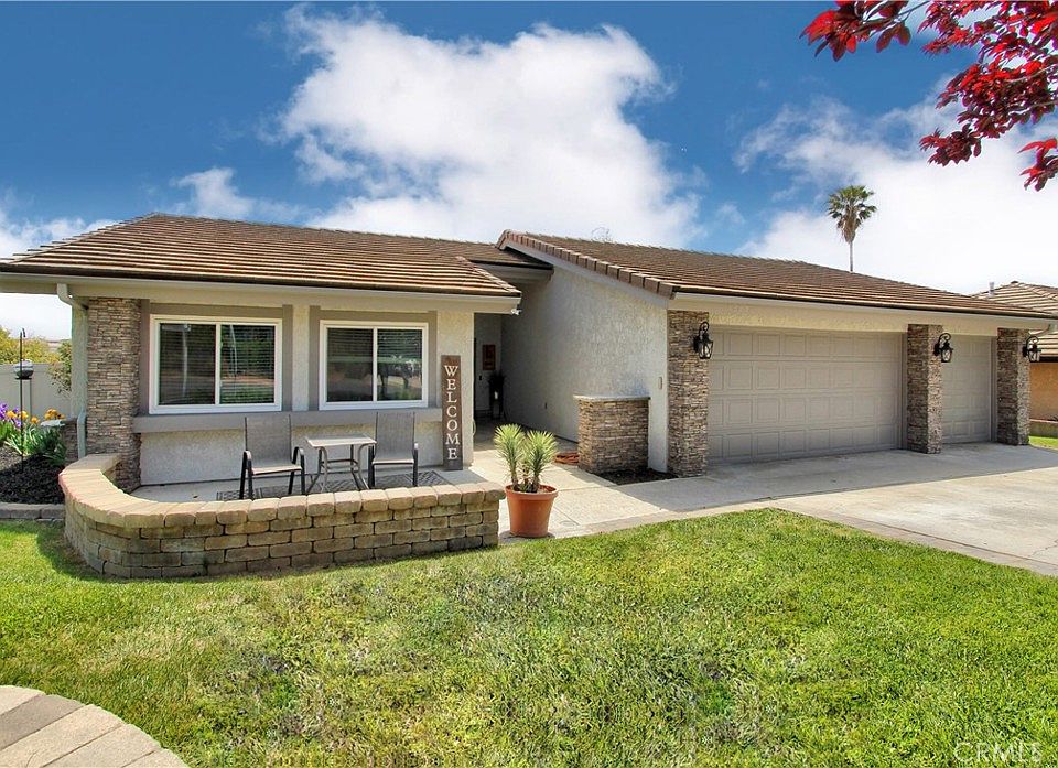 Looking for a home that offers space, upgrades, privacy, and a pool/spa for those summer days that are quickly approaching?! Look no further! This stunning home features almost 2300 sf of living space with 5 bedrooms and 3 bathrooms. The first level offers the double door entryway, formal living room, formal dining room (overlooking the secondary living room below), gorgeous kitchen, ¾ bathroom, and large guest bedroom. The kitchen is stunning with two-toned white/gray cabinetry, stainless steel appliances, quartz counter tops, and recessed lighting. The middle level features the living room with tall ceilings, fireplace, and sliding glass door leading out to the backyard. The lower level features 3 more guest bedrooms, full guest bathroom, and primary suite. The primary suite has tall ceilings, sliding glass door leading out to the backyard, dual closets, and primary bathroom with large bathtub/shower. Head outside to find the spacious backyard with the in-ground pool/spa, grass area, bonus side yard, and mass producing lemon tree! Bonus features include: Dual pane windows/sliding glass doors, vinyl wood plank flooring, upgraded light fixtures, mature and gorgeous landscaping, exterior stone accent, 3-car garage, corner lot, and so much more! No mello roos and no HOA! Don't wait, this beauty isn't expected to last long at this amazing price!!!