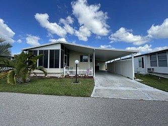 Welcome to your sunny slice of Bradenton paradise! Tucked inside a beautifully maintained 55+ manufactured home community, this charming double-wide invites you to enjoy Florida living at its best. Set on a generous homesite with great curb appeal, this residence features mature tropical landscaping, a wide covered carport, and a peaceful screened front sunroom perfect for morning coffee or evening breezes. Step inside to a bright, open living and dining area filled with natural light and comfortable finishes. The spacious layout creates a welcoming atmosphere for relaxing or hosting guests, while the stylish flooring, neutral tones, and updated lighting add a modern touch. The well-appointed kitchen flows seamlessly into the dining space, making everyday living effortless. Two comfortable bedrooms and two refreshed bathrooms provide convenience and privacy, including a bathroom with a skylight that bathes the space in natural light. The home also offers great storage solutions and thoughtful updates throughout. Outside, enjoy not only the large carport and covered parking but also a private fenced rear deck-ideal for pets, gardening, or unwinding outdoors in true Florida style. Located in a friendly community spread over 44 lush acres, residents enjoy access to scenic lakes, resort-style amenities including a clubhouse, pool, hot tub, and a calendar full of social activities. This is the relaxed, amenity-rich lifestyle you've been dreaming of!