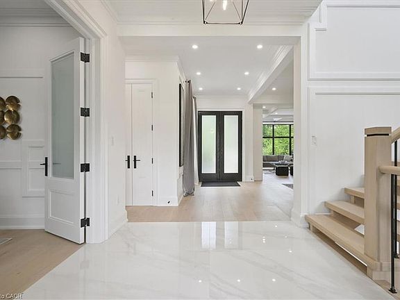 Welcome to this exceptional Keeren Design luxury residence nestled at a quiet cul-de-sac off Morrison Road in prestigious Southeast Oakville. Set on a lush, professionally landscaped ravine lot with creek views, this 2 year new custom-built home offers around 5,400 sqft. of refined living space, exuding elegance, unparalleled craftsmanship, and modern innovation throughout.Stepping in through the triple-pane mahogany front entry, soaring 10 ceilings on the main floor and 9 ceilings upstairs are complemented by white oak hardwood floors, extensive plaster crown moulding, custom wainscoting, and a dramatic open-riser staircase. The chefs kitchen is outfitted with double centre islands, top of the line appliances, Riobel fixtures, Zomodo sinks, Top Notch cabinetry, and a second fully equipped spice kitchen. Additional features include main floor office with custom cabinetry, accent walls through-out, a built-in mudroom, and floor-to-ceiling fiberglass windows framing the ravine.2nd floor is entrenched with natural light through the flared skylight with LED Light Valance, all bedrooms feature custom panel detail, crown moulding, and private ensuites with Riobel fixtures, large-format tiles, heated floors, and wall-hung toilets. The spa-like primary ensuite includes a steam unit and LED valance lighting. The walk-up basement boasts a 5th bedroom with private ensuite, a bar, large recreation space, and a stunning under-garage theatre room wired for Dolby Atmos.Enjoy the private resort-like outdoor living with in-ground pool, paving stone patios, armour stone accents, and a smart RainBird irrigation system, 6"x6" privacy fence, stone skirt. Smart home features include motorized blinds, Lutron lighting, 16 hardwired security cameras, Ecobee, Honeywell security, MyQ garage control, CAT6 wiring, and a smart irrigation systemall designed for seamless living in Oakvilles most coveted neighborhood.