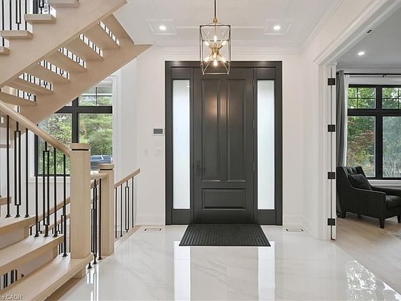 Quiet cul-de-sacProfessionally landscaped ravine lotCreek viewsRefined living spaceWhite oak hardwood floorsExtensive plaster crown mouldingDramatic open-riser staircase