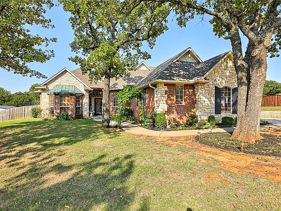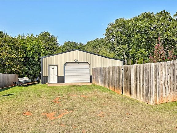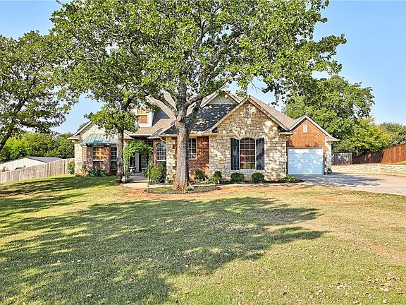 1225 Blackjack Circle Blanchard OK, 73010 - 2,935 Sq Ft. home on 1.12 acres in Grady County and inside Blanchard city limits & was built in 2006. 3 Bedroom, 2.5 Bath + Large bonus room upstairs, Breakfast area and formal dining room, office, walk through access to attic. 2 smaller bedrooms are connected with a Jack and Jill bathroom. Upstairs is on separate Heat and A/C unit. This is in the Blanchard school district. Main living area has a natural gas fire place. Flooring is a mixture of Hardwood, tile & carpet. Master bathroom has a jet tub and fully tiled walk in shower. Water is from a well on the property and there is a working water softener. There are two garages, both are attached. One 2 car garage & a separate 1 car garage. The 1 car garage has built in cabinets, sink and faucet. Outside there is 32’x40’ shop with power & insulation. Shop features 2 walk through doors and 2 roll up doors. Back yard is fenced with a 6’ privacy fence. Outdoor kitchen on back patio features granite counter tops, Charcoal grill, gas grill, wood fired pizza oven & a wood burning fire place.