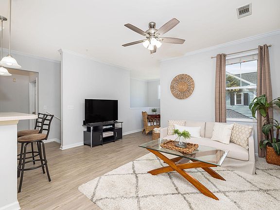 Welcome to 1225 Blakeway 403! Nestled in the Parkside community on Daniel Island, this amazing property is a short stroll to the Crow's Nest Pool, Pierce Park Pool, Freedom Park, and Credit One Stadium. It is also within walking distance to the Waterfront Park, allowing easy access to hop on the Daniel Island Ferry to enjoy downtown Charleston. From the front porch, you enter into the foyer, which leads you to the second floor unit. This light and bright open floor plan offers three generous size bedrooms and two full baths. This corner unit features a spacious living room with plenty of windows, a dining area, and a private porch that provides great outdoor living space... the perfect spot to relax and unwind with a beautiful views out the back.LVP flooring is throughout the living room, kitchen, and hallway and the interior has a new fresh coat of paint. Restaurants, shops, schools, parks, walking trails, and the community library are all within close proximity. The residents of Parkside community can enjoy the private grilling and a firepit area.