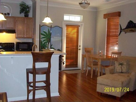 - This first floor condominium has been upgraded to include many custom details and is conveniently close to the K-8 Daniel Island School and easy walking distance to 24-acre Smythe Park which boasts an 11-acre lake, scenic picnic areas, blossoming gardens and a play park. - Upgrades include beautiful heart pine floors, crown molding and enhanced molding in the living area, custom wood blinds and plantation shutters, new ceiling fans and decorative faucets and showerheads. - The open floor plan is great for entertaining with the kitchen overlooking the family room and dining room. - The fully appointed kitchen offers maple picture frame cabinets, solid surface countertops, a built-in microwave and a raised bartop. - Separate laundry/utility room - Both bathrooms include cultured marble countertops and ceramic tile flooring. - Walk-in closet in the master suite. - Relax and enjoy outdoor island living on the covered porch off the dining room featuring Bahama shutters for added privacy. - Just steps away from parks, walking/biking trails and the Daniel Island Library. - Owners are members of the Daniel Island Community Association with full access to island amenities including Pierce Park pool and pavilion. - Furniture is available for sale. - Buyer pays a one time neighborhood enhancement fee of .5% x sales price to Daniel Island Community Fund at closing. Daniel Island resale addendum will be required on offer to purchase. Daniel Island Resale Addendum, Property Disclosure and Community Fund Disclosure are attached.